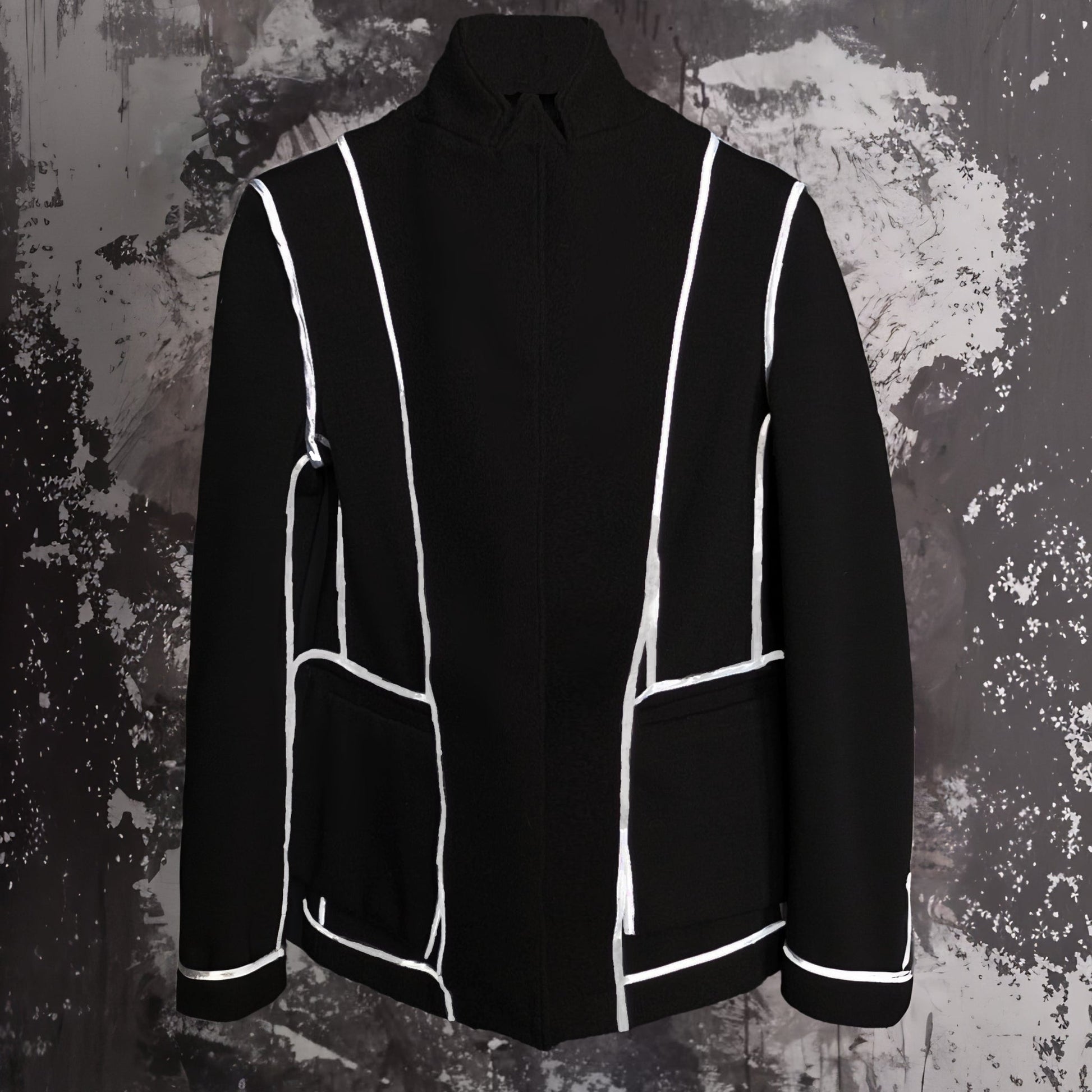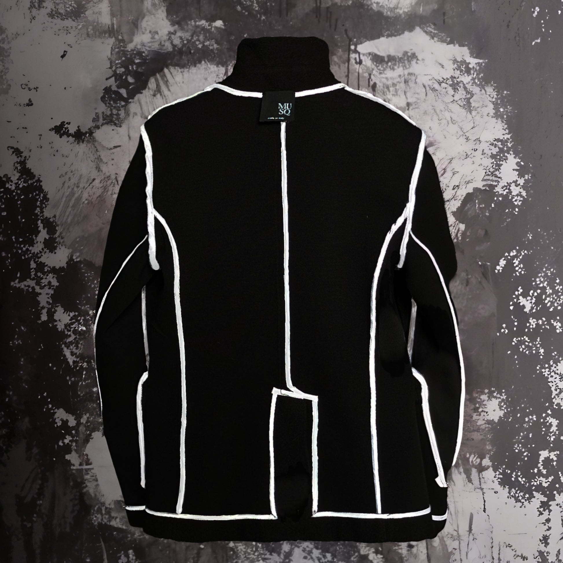 Il suo cuore pulsante è nell'interno: interamente bordata con un nastro bianco in raso a contrasto, questa giacca è pensata per essere indossata rovescia. Se il tuo stile è decisamente forte e personale, puoi trasformare il capo per mostrare il contrasto bianco-nero, rivelando la cura artigianale e il dettaglio come un vero manifesto estetico.