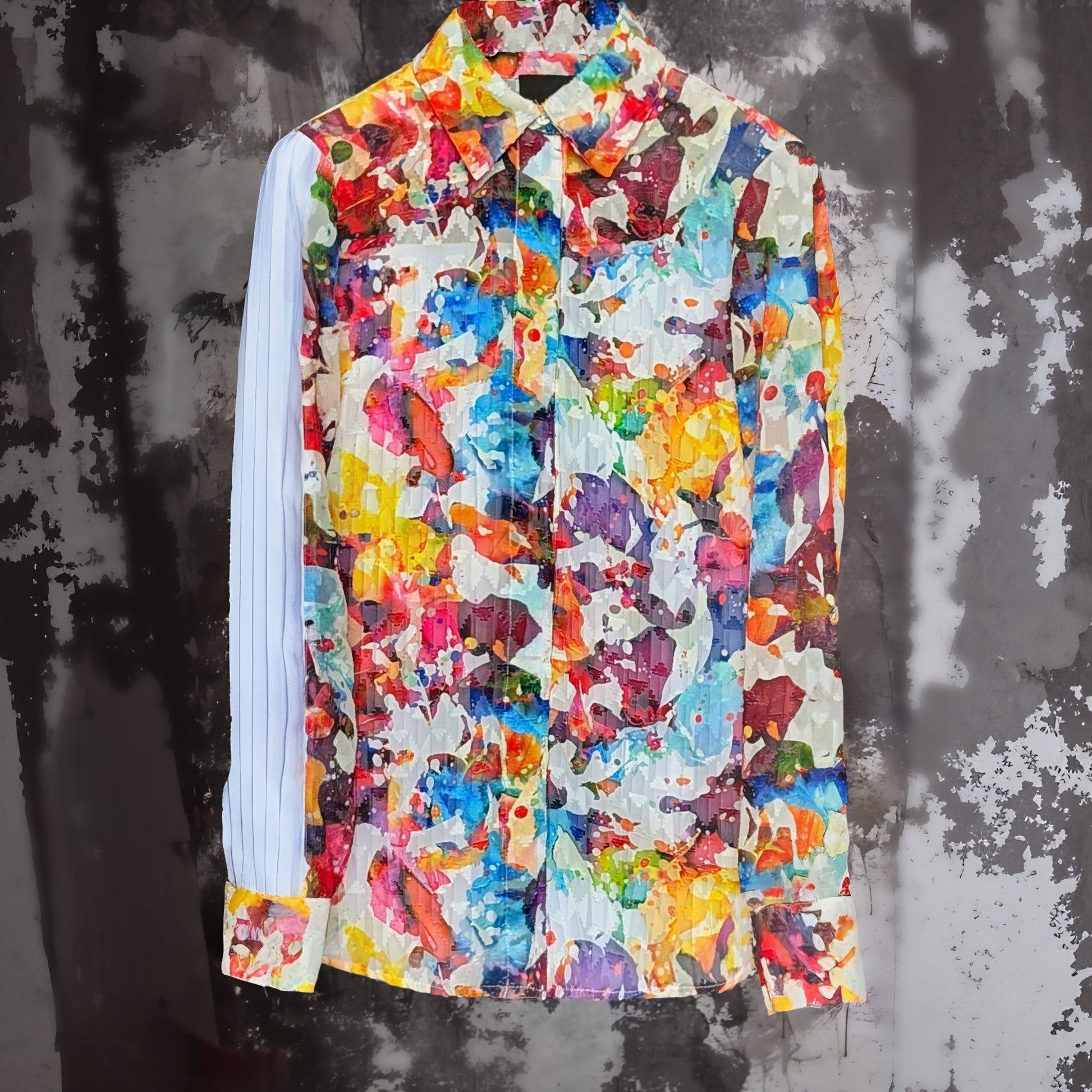 Scopri la camicia Artemide di MUSQ, un manifesto di stile per chi ricerca una sofisticata idea di lusso nella preziosa delicatezza di una fantasia astratta multicolore.