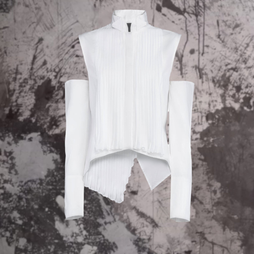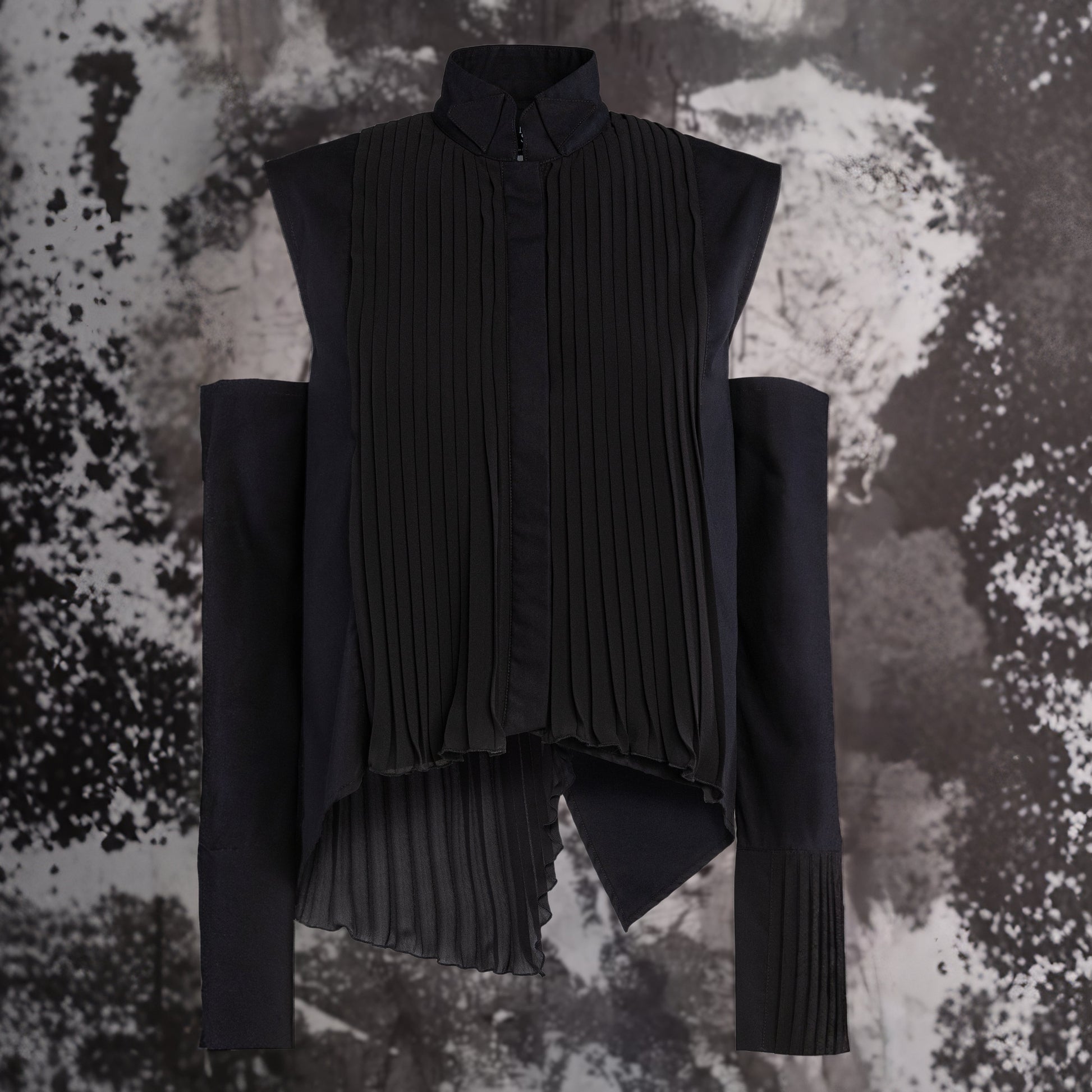 Eleganza senza tempo, unita a un dinamismo moderno. Ogni dettaglio, dal collo tuxedo alle applicazioni plissé, è pensato per esaltare la silhouette con una vestibilità fluida e raffinata, per una donna che cerca autenticità e perfezione nei particolari.